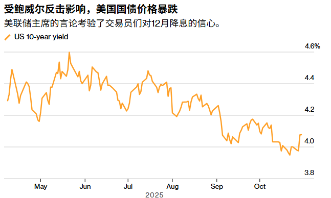 西部资产管理公司投资组合经理尼古拉斯·马斯托亚尼表示,鲍威尔重申“通胀仍高于目标、劳动力市场降温但未崩溃”的拉锯局面,其鹰派语气“让市场顿时处于下风”。